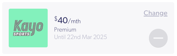 In My Account, Kayo will also be greyed out, with a date indicating when your access will be removed (e.g. Until 22nd Mar 2025).