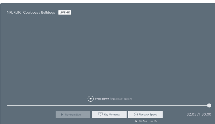 4K streaming on selected content is only available on a Premium plan. You’ll also need to use a device that's compatible with Kayo and supported for 4K viewing on Kayo. You can check your device here.